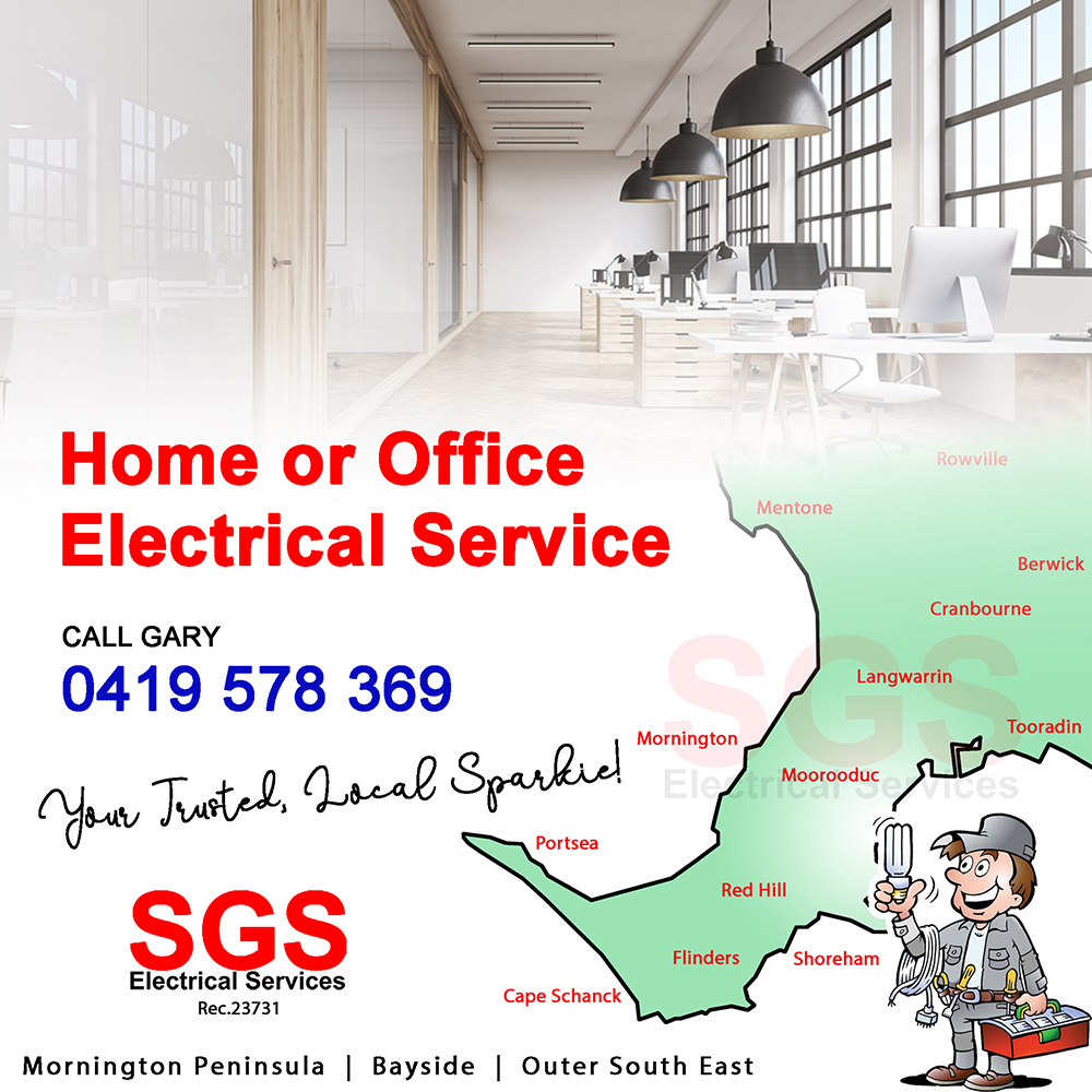 Sparky & Electricians servicing Mornington, Mt Eliza, Langwarrin, Somerville, Tyabb, Mt Martha, Safety Beach, Dromana, McCrae, Red Hill, Main Ridge, Shoreham, Merricks, Somers, Bittern, Hastings, Pt Leo, Balnarring, Devon Meadows, Botanic Ridge, Seaford, Carrum Downs