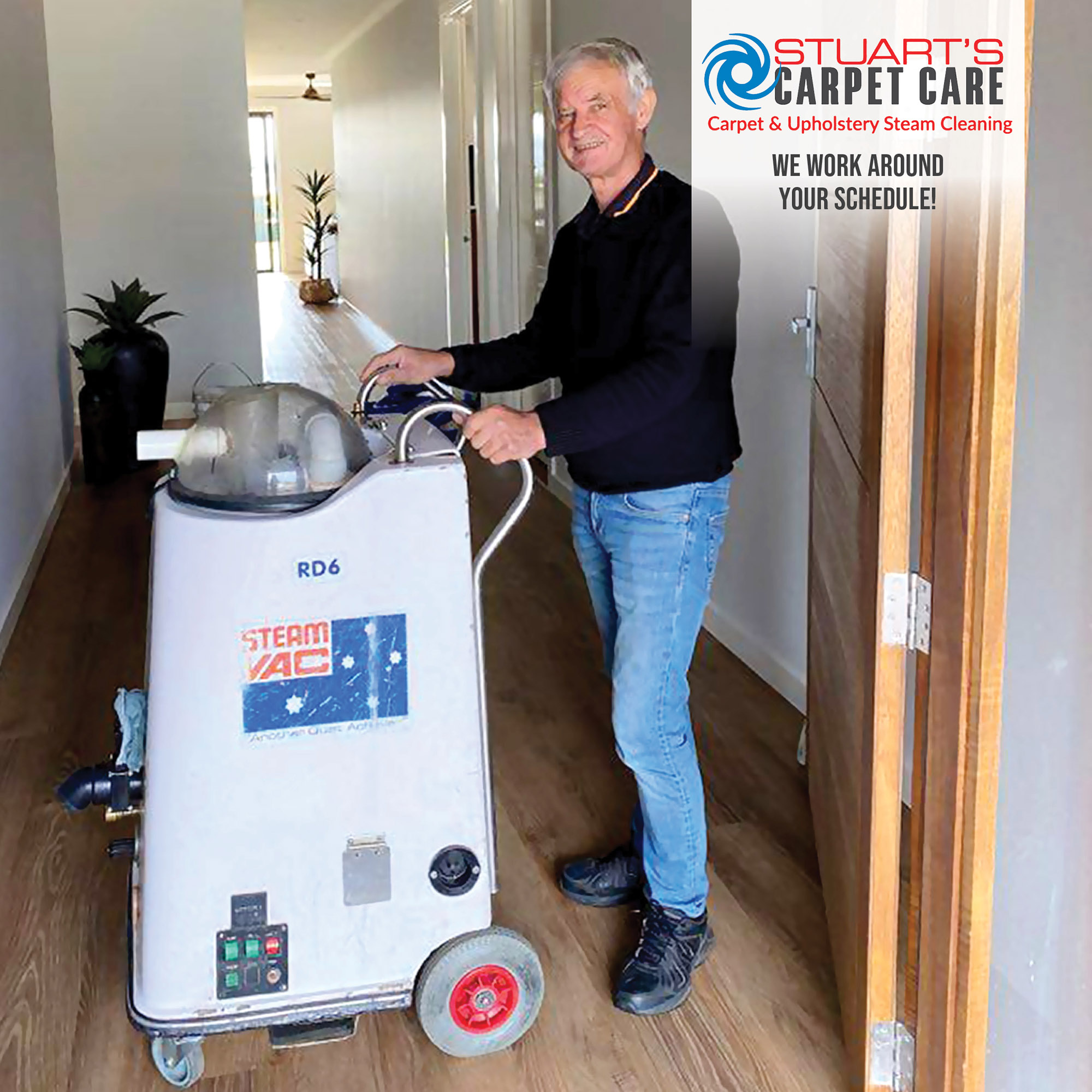 Stuart’s Carpet Care caters for all types of business and residential homes, specialising in steam cleaning and stain removal on a variety of surfaces from floor carpets to lounge suites.
