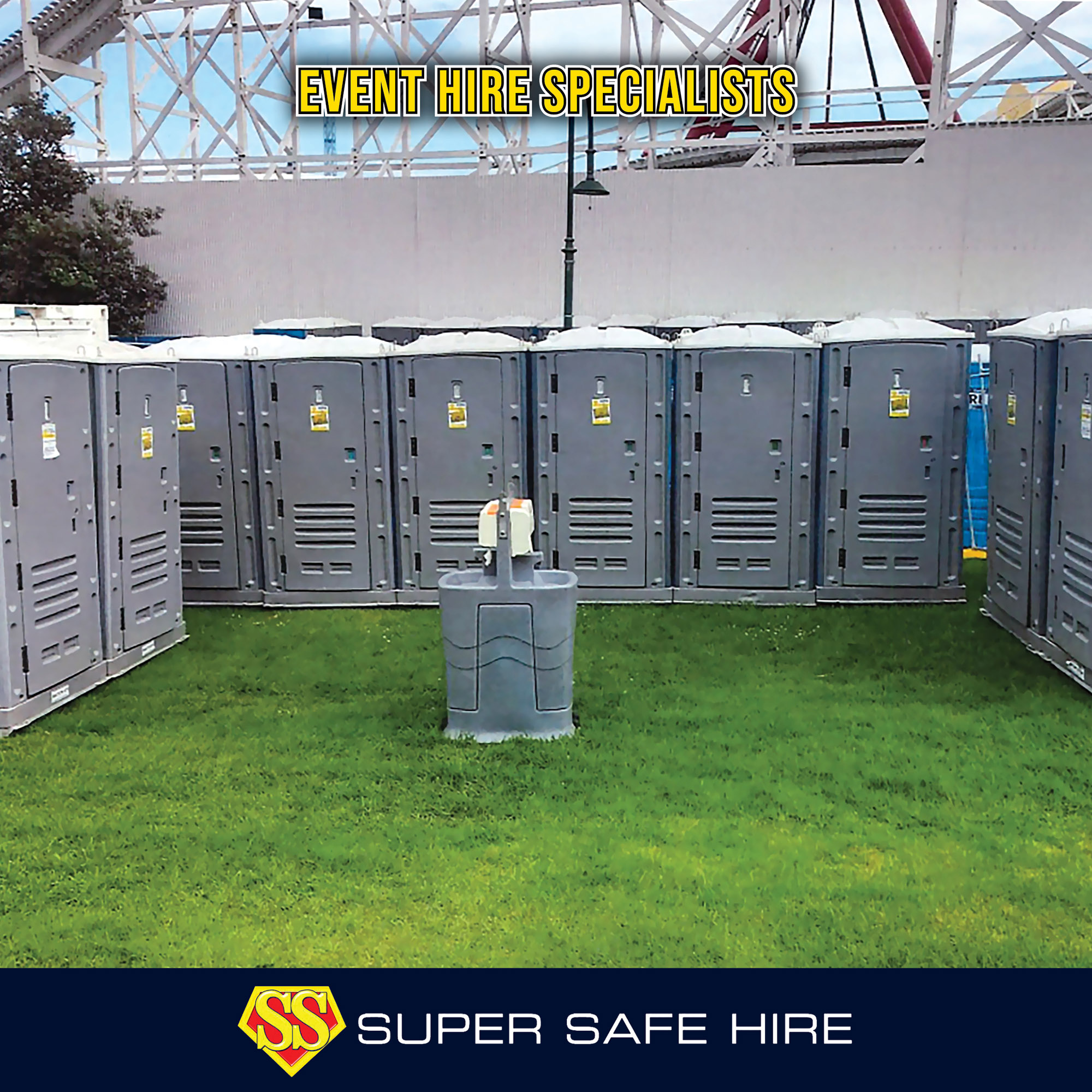 Over a long period of time Super Safe Hire has also built a very strong hire business with the amenities needed for large and small functions and events having supplied some of the major sporting events in Victoria.